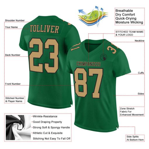 Custom Kelly Green Old Gold-Black Mesh Football Jersey For Men & Women